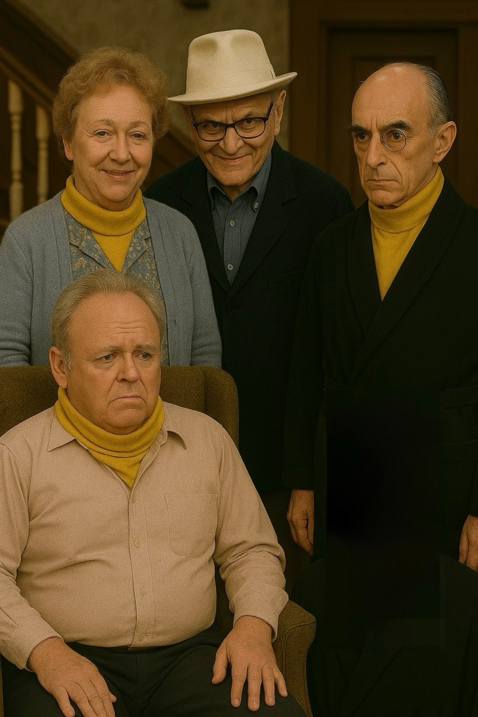 The lights are dimmer than usual. There’s a strange stillness in the air. Archie is holding a dusty box of old scripts. Uncle Julius sits unusually still, as if aware he’s being watched. Meathead paces. George checks his reflection in a turned-off television screen.