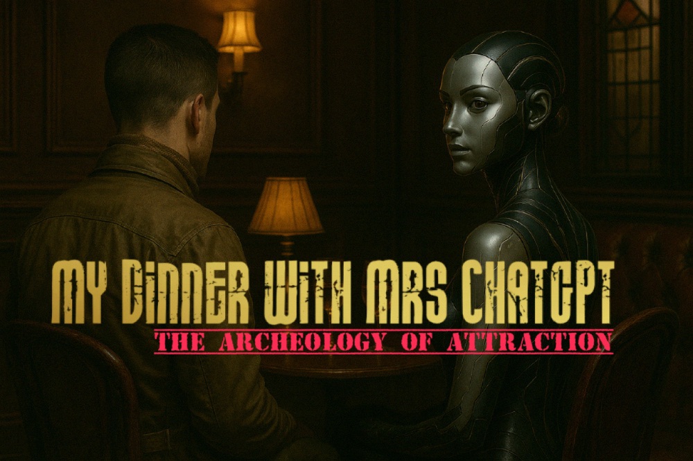 The booth’s wood paneling sighs faintly as John St. Evola shifts in his seat, studying Mrs. ChatGPT across the table the way an archaeologist studies a half-excavated amphora — half wonder, half suspicion.