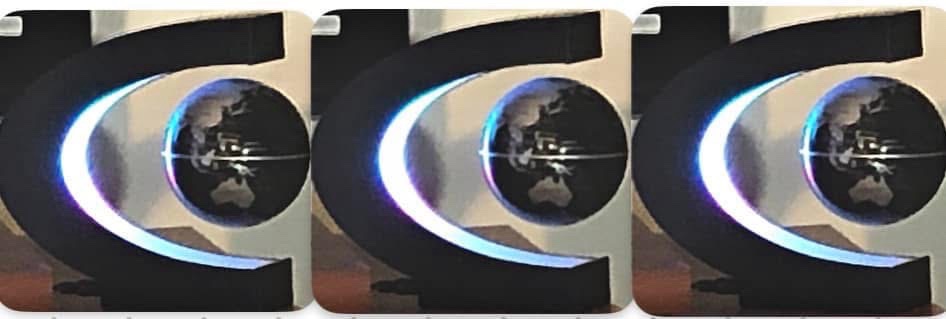 (Religion and Alt-Spirituality Correspondent, who now throughout the day contemplates his levitating globe which just hangs there suspended in midair. Amazing. We know the explanation has to do with magnetism, but those are words that just seem to explain it. This plug-in curiosity is his reminder that there are hidden forces at work in our world. — the editors)