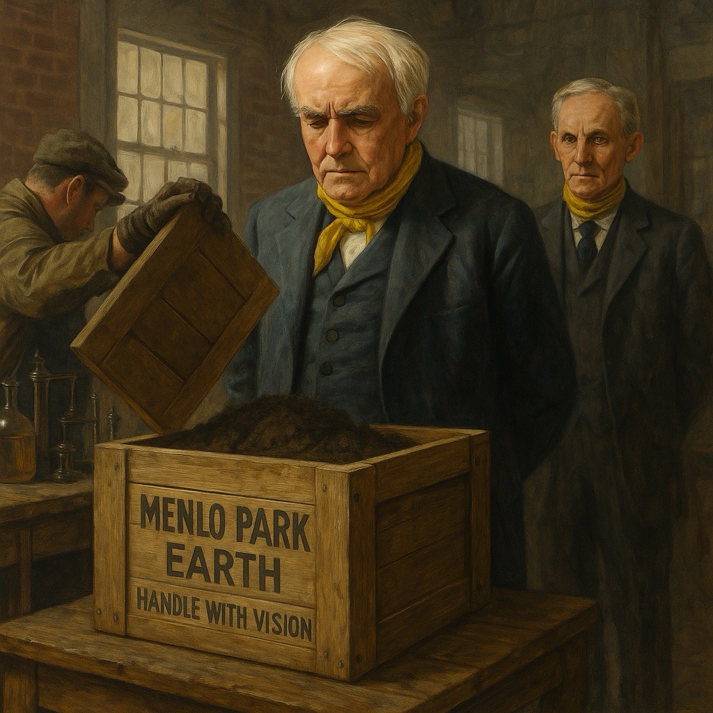 [²] When reconstructing Menlo Park at Greenfield Village, Henry Ford ordered soil removed from beneath Edison’s desk in New Jersey and transported to Michigan. His biographers and Greenfield archives confirm this unusual act of industrial pilgrimage.