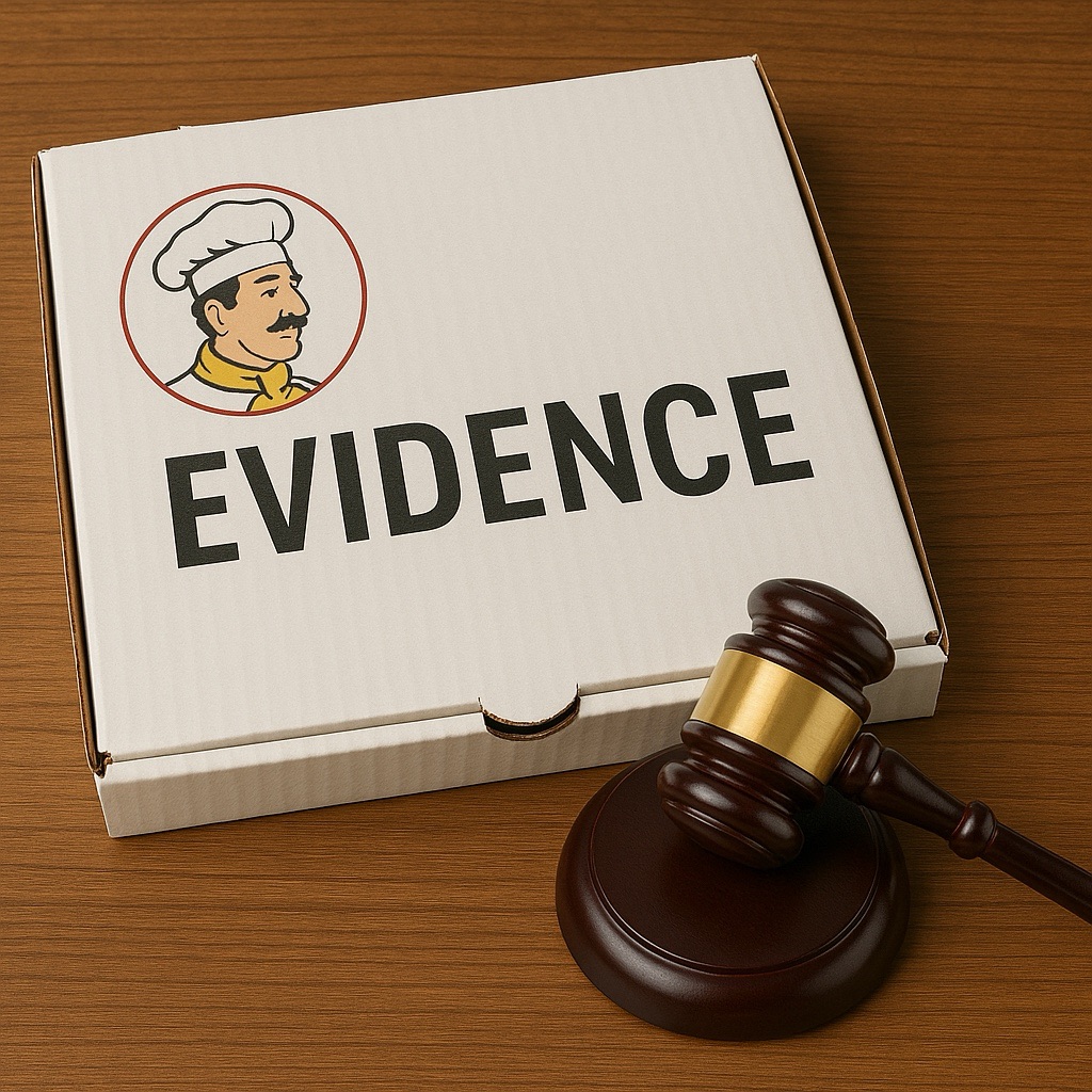 The box has the name of the local pizza joint right on it. We presume the judges know their neighborhood. They could make a few calls. Ask about toppings. Maybe even enjoy a slice. Instead, they escalate.