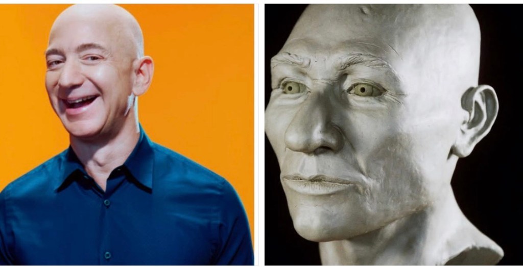 Perhaps Bezos’ face was whispered into the clay, not by ancestry, but by satire.