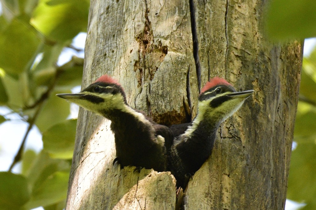 The Pileated Woodpecker (Dryocopus pileatus)—imagine a pterodactyl with a flame-colored mohawk and better parenting instincts—comes from what sociologists once called a stable two-parent home. The male takes an active role in both incubating the eggs and feeding the young. He does not merely provide, but guides—teaching the fledglings how to forage for an honest meal, hammer out a living, and listen for the echo of insects under bark.
