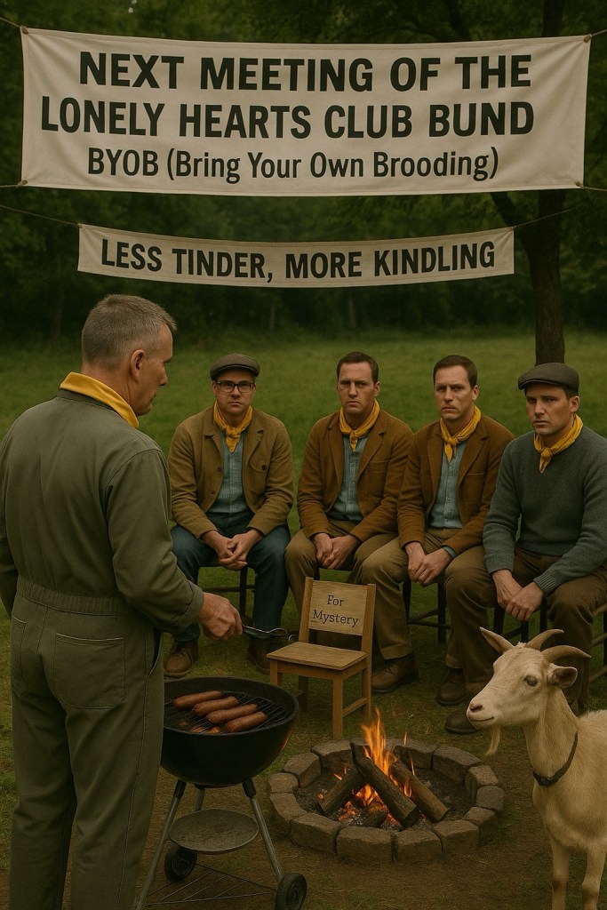 It has been observed by some of the younger interns—those still inclined to expect narrative closure—that the members of Sgt. Pepè’s Lonely Hearts Club Bund seem oddly content, despite their solemn faces and suspiciously long bachelorhoods.