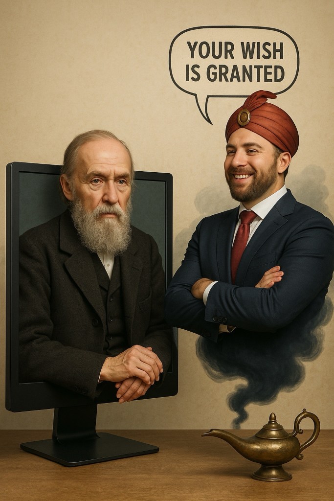 And as with the old genie’s lamp tales, the danger isn’t that the wish is denied—it’s that it’s granted exactly as spoken, not as intended. You wish for the return of the dead, and the genie—ever the literalist—delivers them as high-bandwidth avatars instead of warm-blooded kin. Wishes are contracts in the genie’s court, and the clauses you forgot to write are where the trouble hides.