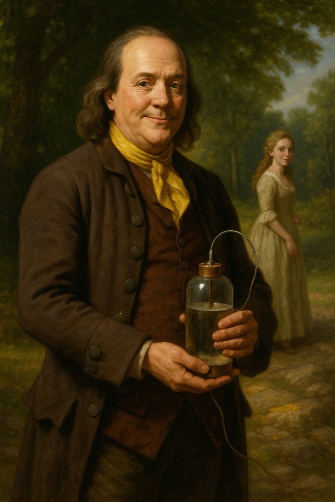 Franklin wasn’t just another colonial tinkerer. He was, in many ways, the original American prototype. He loved to experiment — with kites, stoves, spectacles, and schemes. But his curiosity wasn’t confined to the workshop. He carried a bawdy sense of humor and a famously high appetite for female company. The same restlessness that pushed him to chase lightning pushed him to chase women, and he made little secret of it.