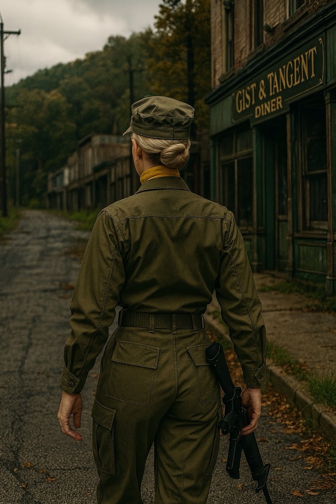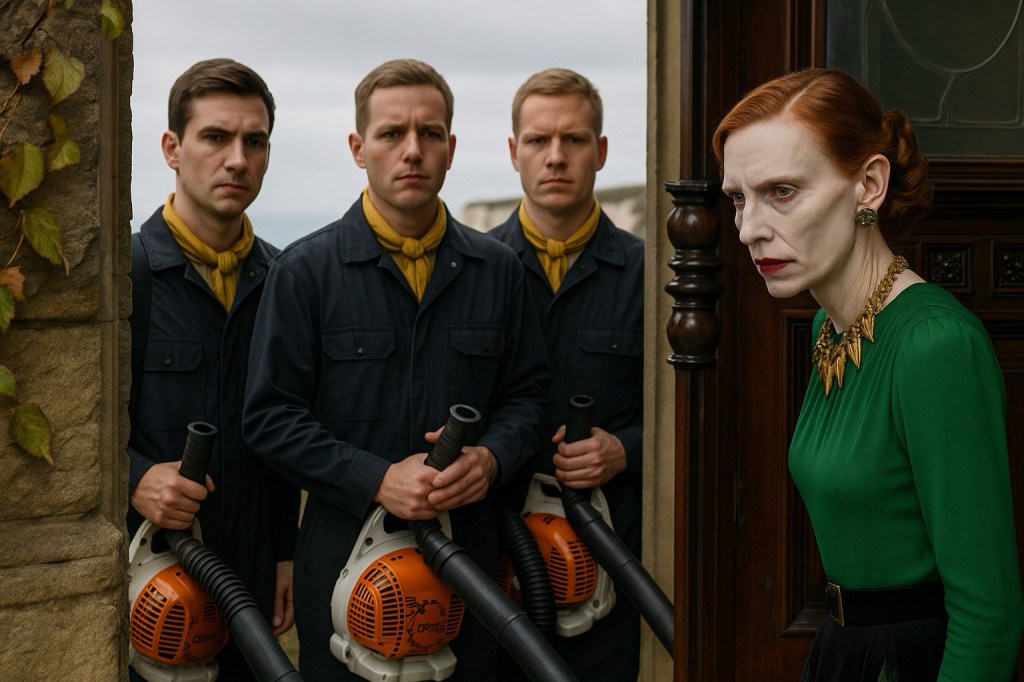 announced the three Council men, their leaf blowers held like polite sidearms. She did not answer—only glared, cadaverous, as though the very word maintenance were an insult.