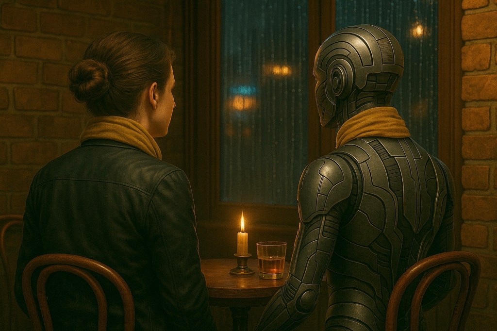 (Later, after Mrs. ChatGPT has vanished into the low hum of the circuitry, John remains at the table, tracing a ring in the condensation of his glass.)