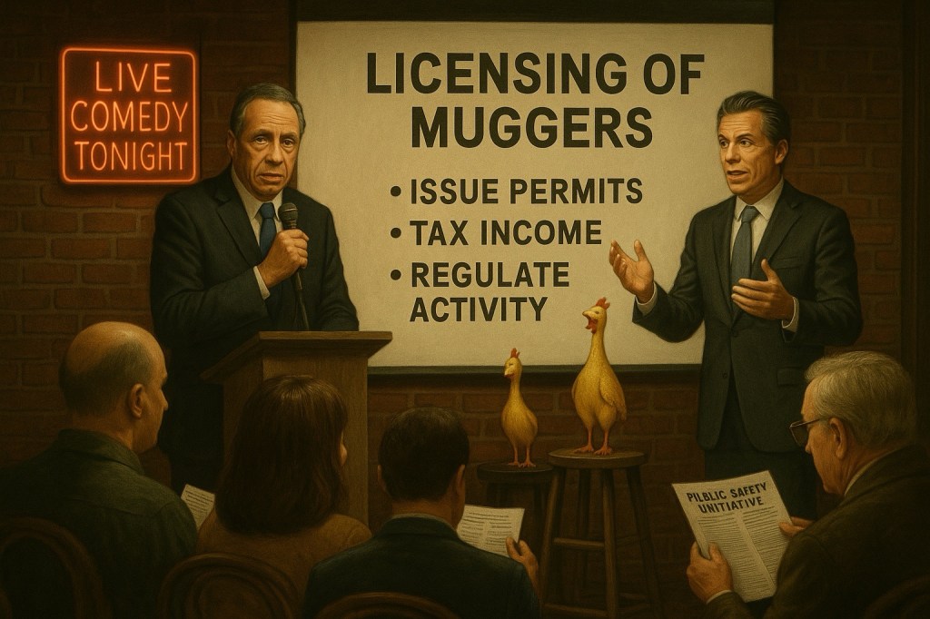 Years ago, radio talker Bob Grant’s stand in host, Jay Diamond, did that bit where he imitated Mario Cuomo proposing a plan to license muggers.