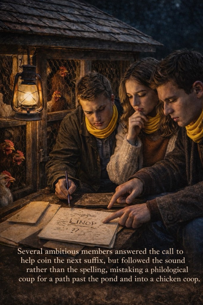 The lesson for our present inquiry is straightforward: when a suffix reaches this level of comic velocity, it is no longer decorative. It has become diagnostic. Language is not playing; it is registering shock.