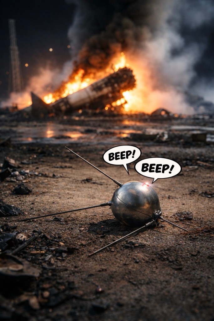 When the United States attempted to launch its own satellite on December 6, 1957, as part of Project Vanguard, the rocket rose only a few feet, shuddered, burst into flames, and collapsed on the launch pad. The payload—an earnest little sphere weighing just over three pounds—was flung clear of the fire and lay on the ground, beeping dutifully, as if unsure what it had done wrong.