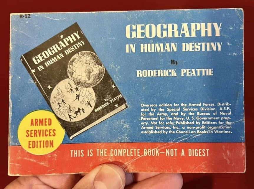 For some time we had been searching for an affordable hard copy of Geography in Human Destiny. We distinctly remember seeing it in Waldenbooks more than half a century ago. It always tugged at our curiosity, but, like many books that wait patiently on shelves, it was never read.