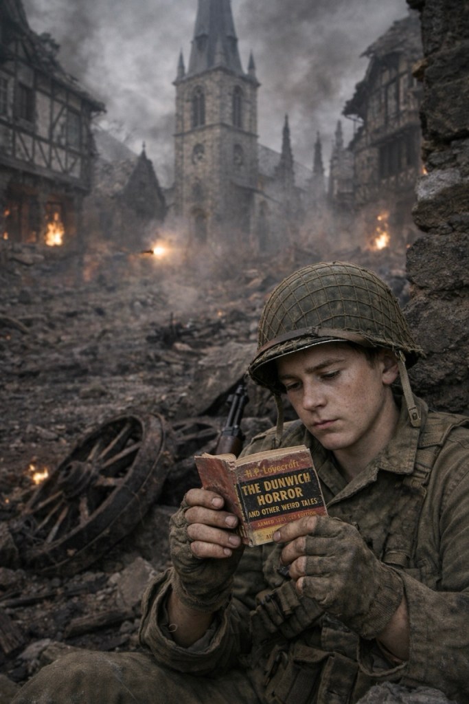 More surprising was the inclusion of H. P. Lovecraft’s The Dunwich Horror and Other Weird Tales, printed as an ASE in 1945. One wonders who, while living amid real horror and strangeness, chose to read fictional versions of it. Perhaps such tales found a more enthusiastic audience among the rear echelon than at the front, where the uncanny was already all too present.