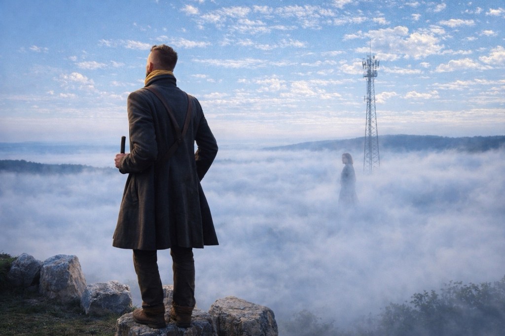 The Initiates fire had rekindled; he picked up his phone, tapped her name, and lifted it to his ear. The signal dropped. He lowered the phone, nodded once, and looked out into the dark toward a faint cell tower on a distant ridge—the direction of tomorrow’s hike.
