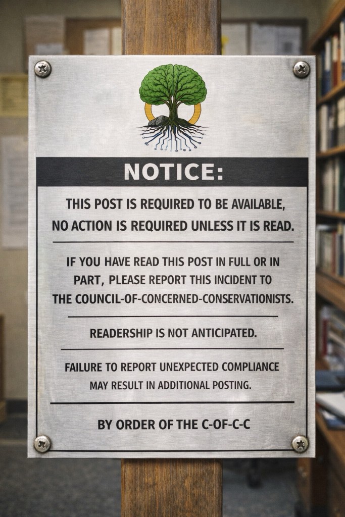 In the end, the label makes sense. The remaining absurdity belongs not to the regulation, but to the reader who paused over it longer than required. In that sense, the exercise resembles a harmless Kafkaism—no accusation, no penalty, no trial—just a moment of voluntary delay in which the mind discovers it has complied with nothing more than its own curiosity.