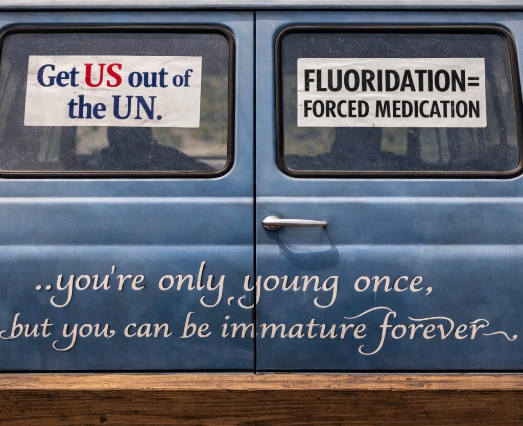 It should be noted—though it was not fully legible at the time—that the author was already familiar with John Birch Society literature as a teenager and did not encounter it in Ozona as an anthropological curiosity. What struck him then was not the content itself, but its placement: sitting openly in a service bay and at the curb, integrated into the everyday maintenance of American life — assumed rather than argued.