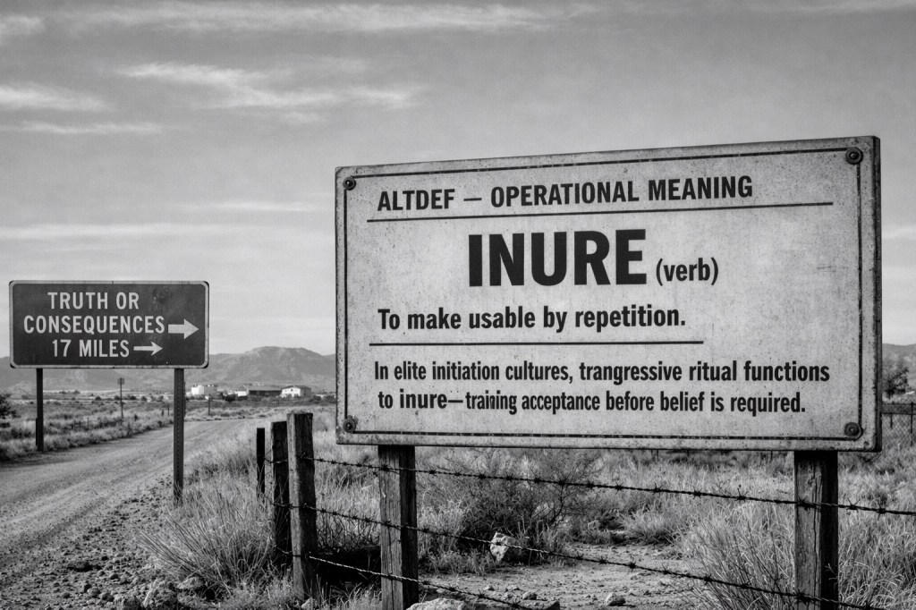 “By contrast, elite university fraternities and secret societies—again, documented ones—have long employed initiation practices involving humiliation, enforced silence, endurance trials, the compelled consumption of unpleasant or degrading substances, simulated or actual nudity, sleep deprivation, and degradation framed as character formation.