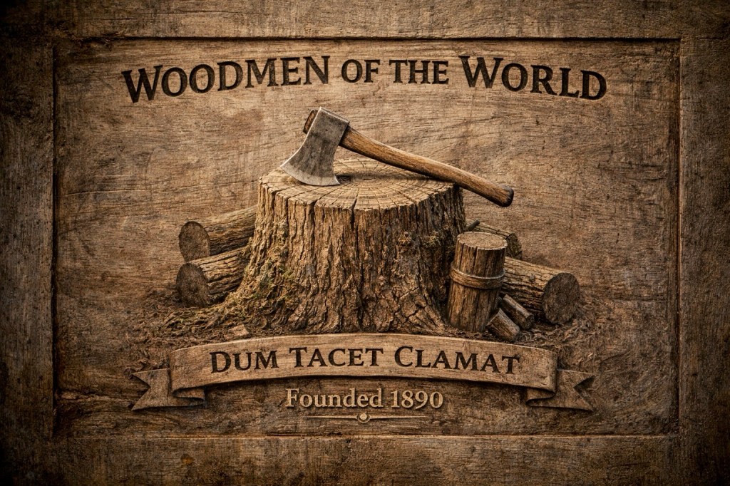 The Woodmen of the World took their name from frontier imagery rather than secrecy. Their symbols—trees, axes, logs, and stumps—were reminders of labor, mortality, and continuity. A life was something grown, worked, and eventually cut down, but not erased. Their famous tree-stump grave markers made the point plainly: the individual falls; the forest endures.