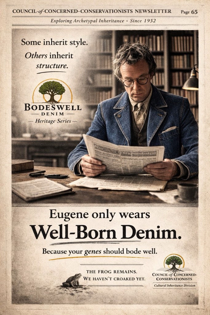 Meanwhile, the Trickster never left. He merely molted. In contemporary culture — and in our own pages through characters like Pepe — the amphibian impulse persists. A wink here. A destabilizing aside there. The frog still whispers. The grin still flickers.