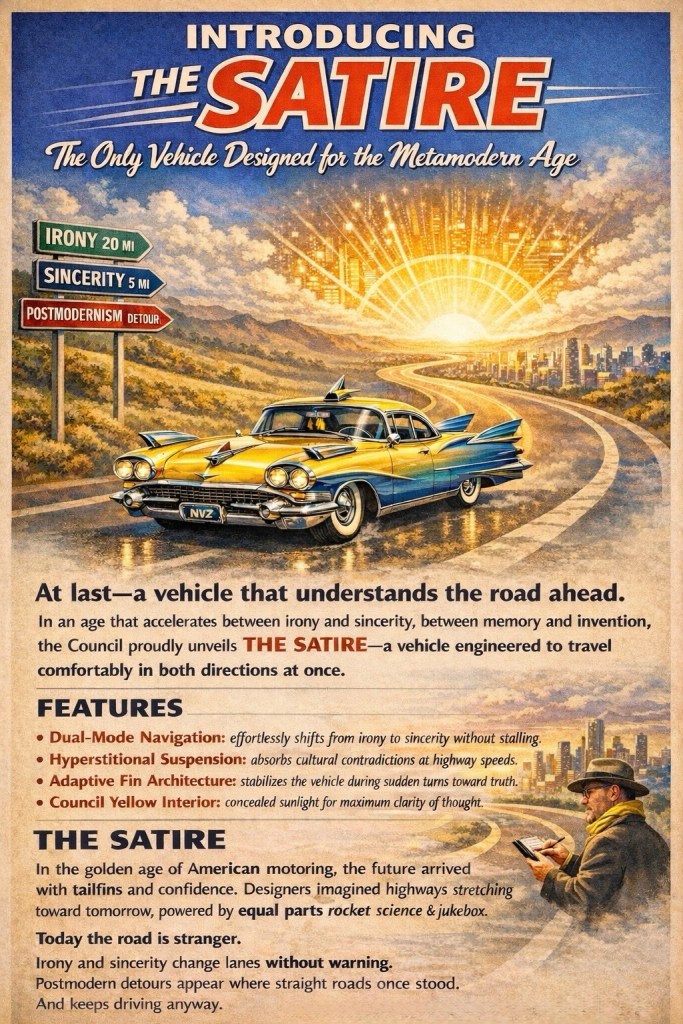 Because sometimes the only way to travel honestly through a complicated world—is with a vehicle that understands the joke!