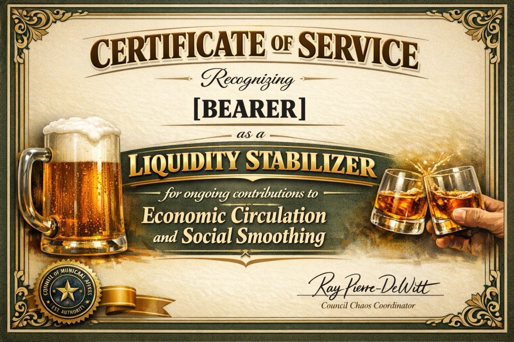 They keep money moving—bars, restaurants, distributors, taxes. It all flows. You smooth the edges of life, and the system smooths its balance sheet.