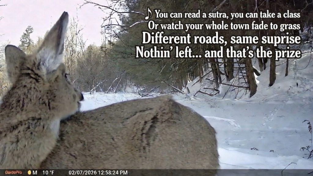 So this piece is a small observation from that landscape. A kind of roadside sutra. A hymn to the idea that if you remove enough, eventually you arrive somewhere.