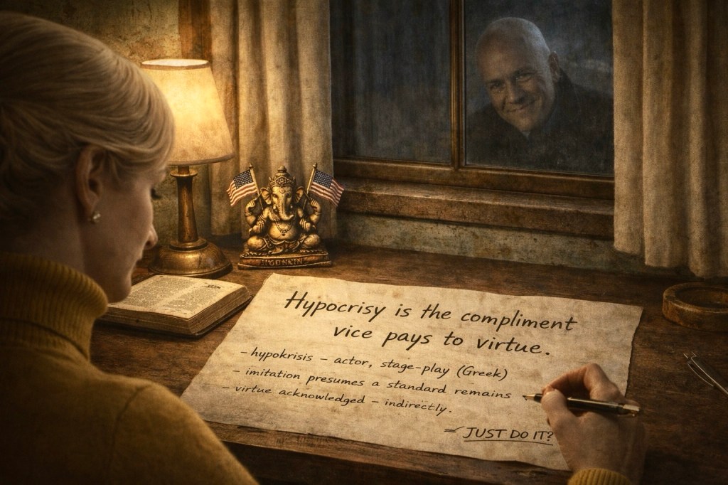 You once suggested, René, that hypocrisy is merely failed virtue. I begin to suspect it may also be its necessary companion—the courtesy that vice pays to virtue, and the scaffold that keeps aspiration from collapsing into appetite.