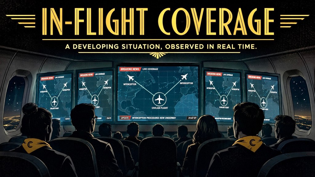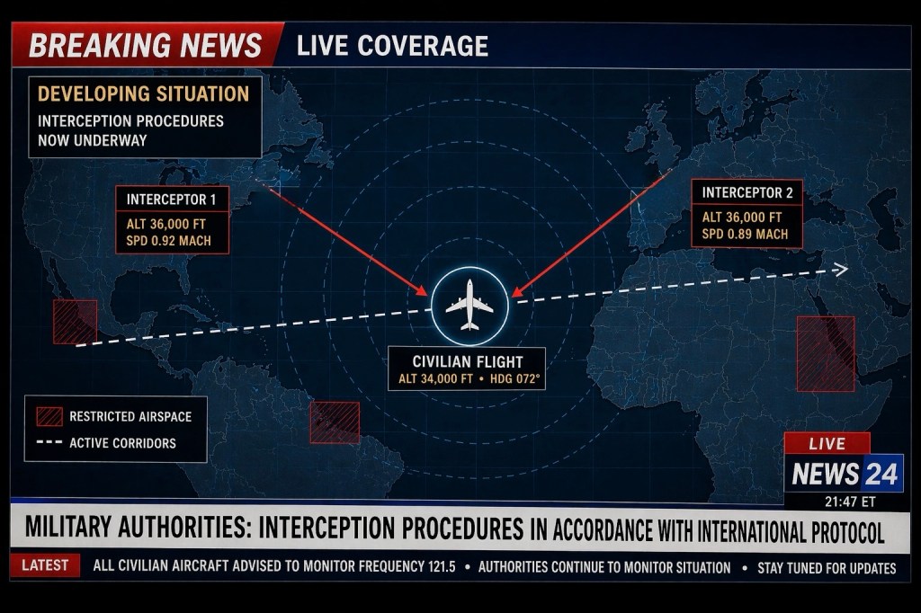 A civilian flight path was highlighted. It matched their direction. No announcement had yet been made. The map zoomed. Two additional aircraft appeared—faster, angular.