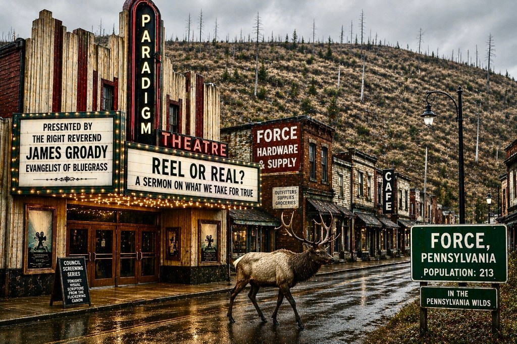 [He pauses. Picks up the banjo. Plucks a single, resonant note.]