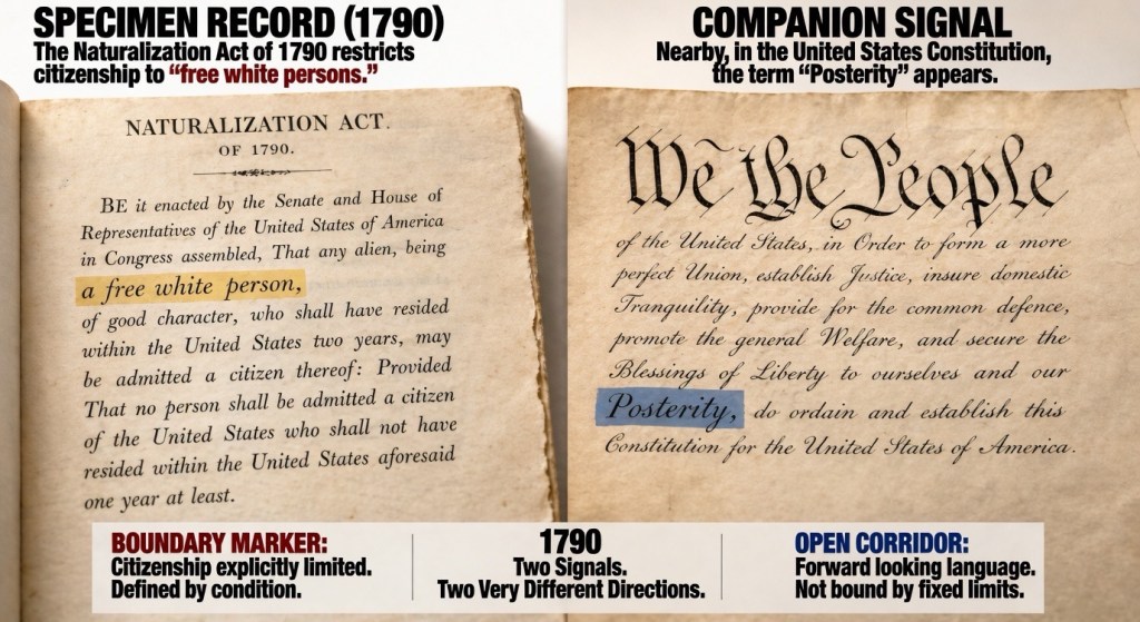 Nearby, in the United States Constitution, the term “Posterity” appears.